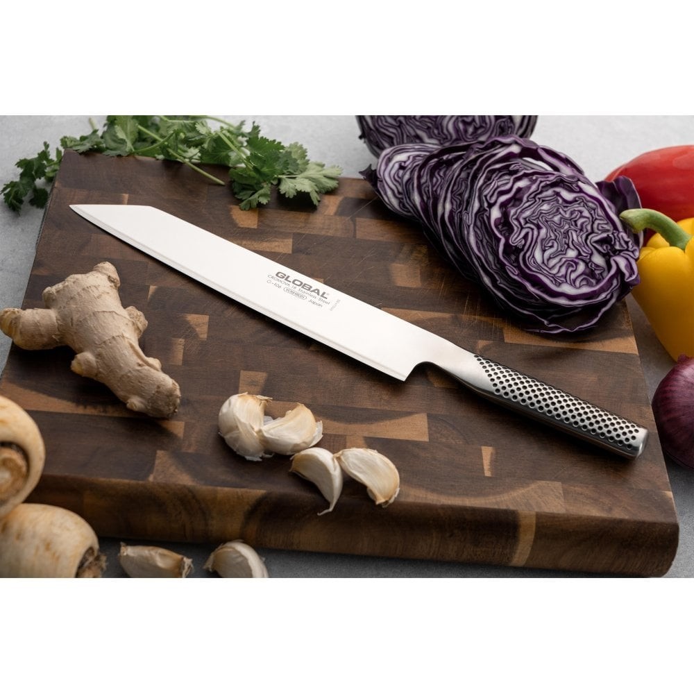 Birçok Japon bıçak üreticisi geleneksel olarak "Kiritsuke" olarak bilinen tek taraflı bilemeli özel bir bıçak üretmiştir. Etkili bir şekilde kullanmak için önemli bir beceri gerektirmiştir ve birçok Japon restoranında yalnızca baş şefin kullanmasına izin verilmiştir. Kiritsuke Bıçağı bu nedenle uzmanlık, statü ve kıdem sembolü olarak kabul edilmiştir. Bu gelenekten beslenen Global® Knives, çok yönlü bir bıçak oluşturmak için Klasik serisinde Kiritsuke'nin Çift Kenarlı bir versiyonunu tasarladı. Bu bıçak, normalde bir Gyuto veya Şef Bıçağı ile yapılan görevlerin çoğunu, ancak Nakiri ve Sujihiki'nin görevlerini de yerine getirmek için kullanılabilir. Tipik Gyuto'dan daha az eğriliğe sahiptir, bu da onu "sallama doğrama hareketi" için daha az uygun hale getirirken, "itme ve çekme" kesme hareketi için mükemmel hale getirir. Bıçağın ucu, özellikle ince doğrama ve doğrama için uygundur.