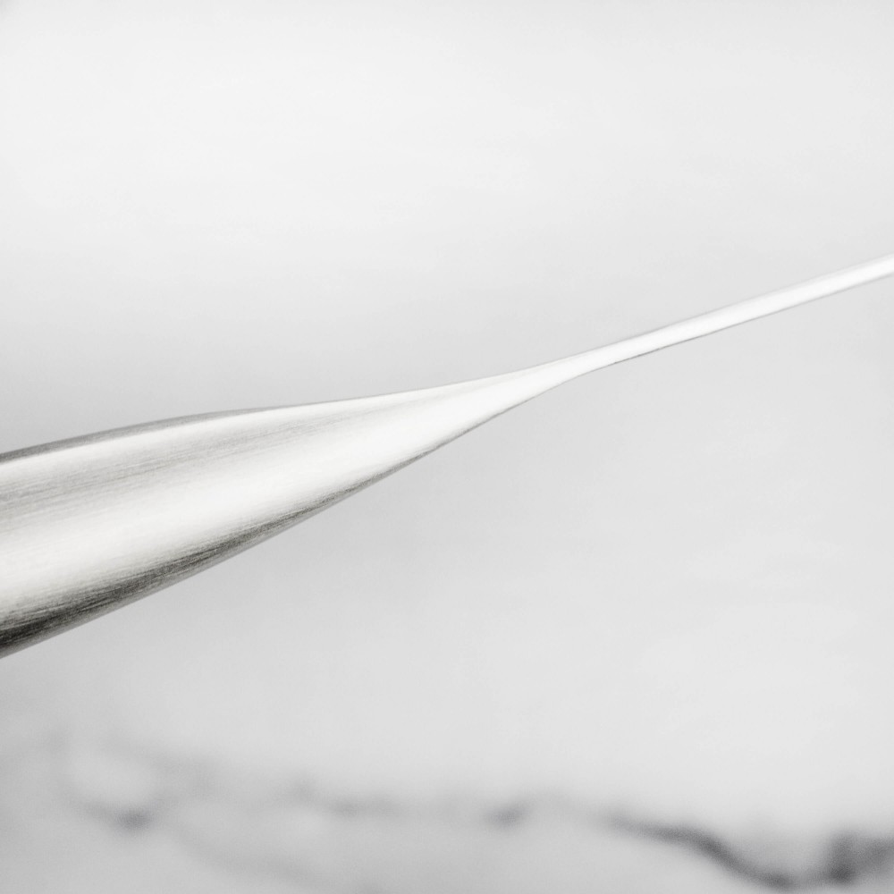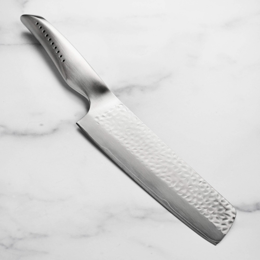 - 56-58° Rockwell Sertliği; her bıçak ayrı ayrı elde dövülür, böylece bıçak yüzeyindeki hava cepleri oluşturulur, bu desen sayesinde yiyecekler yüzeyden zarif bir şekilde düşmesini sağlanır.