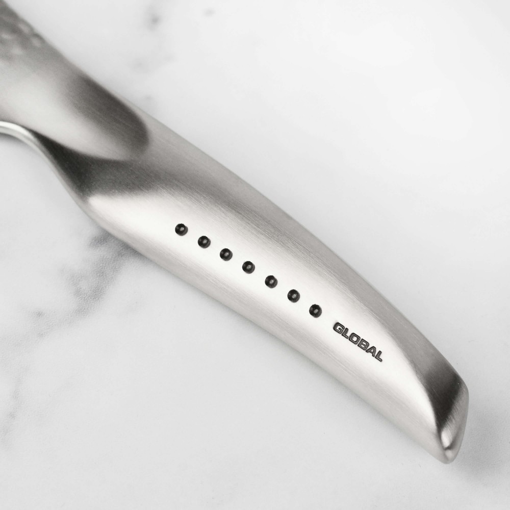 Global bıçaklar, kesici kenarları ve dengelenme biçimleri olmak üzere iki yenilikçi özellik içerir. Herhangi bir bıçağın en önemli detayı keskin kenarıdır ve Global bıçakların keskinliği gerçekten onun imzasıdır. Global bıçaklar, paslanmaya, lekelere ve korozyona karşı direnç gösterirken keskin bir şekilde bir noktaya ve dar bir açıyla bilenir veya taşlanır. Düz kenar, daha uzun süre keskin kalan önemli ölçüde daha keskin bir ağız ile tamamlanır. Global bıçağın ağzı o kadar büyük ve belirgindir ki çıplak gözle kolayca görülebilir ve bıçağın ucundan çeyrek inç veya daha fazla yukarıya uzanır.