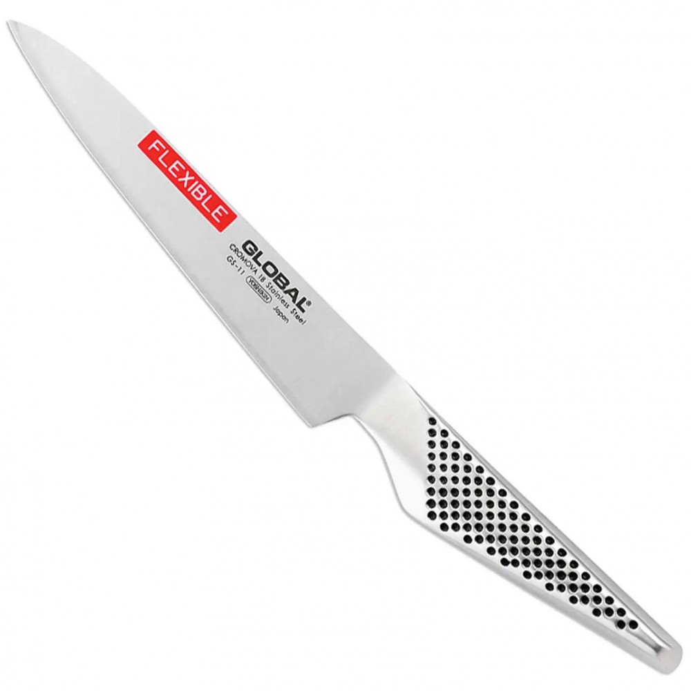 Global bıçakları, jilet gibi keskin bir kenara sahiptir. Pas, lekeler ve korozyona karşı dayanıklı olduğu için, GLOBAL tarafından özel olarak geliştirilen CROMOVA 18 paslanmaz çelikten imal edilmiştir. Soğuk temperlenmiştir ve Rockwell C56-58 sertliğe sahiptir. Her bıçak, mükemmel dengeyi elde etmek için sapları kumla doldurarak dikkatlice tartılmaktadır. Diğer benzersiz özelliğide sap tasarımıdır. Sapında ki çukurlu tasarım en iyi tutuşu ve kavramayı sağlarken, bıçağın tamamında kullanılan boşluksuz tasarım, bıçağın kirlenmesine ve gıdaların bıçak üzerinde kalasına izin vermez. Bu tasarım sayesinde hijyen konusunda en üstün bıçaklardır. 15 derecelik dar açılı kesici kenar, üstün performans ve çok hassas tutma sağlar.