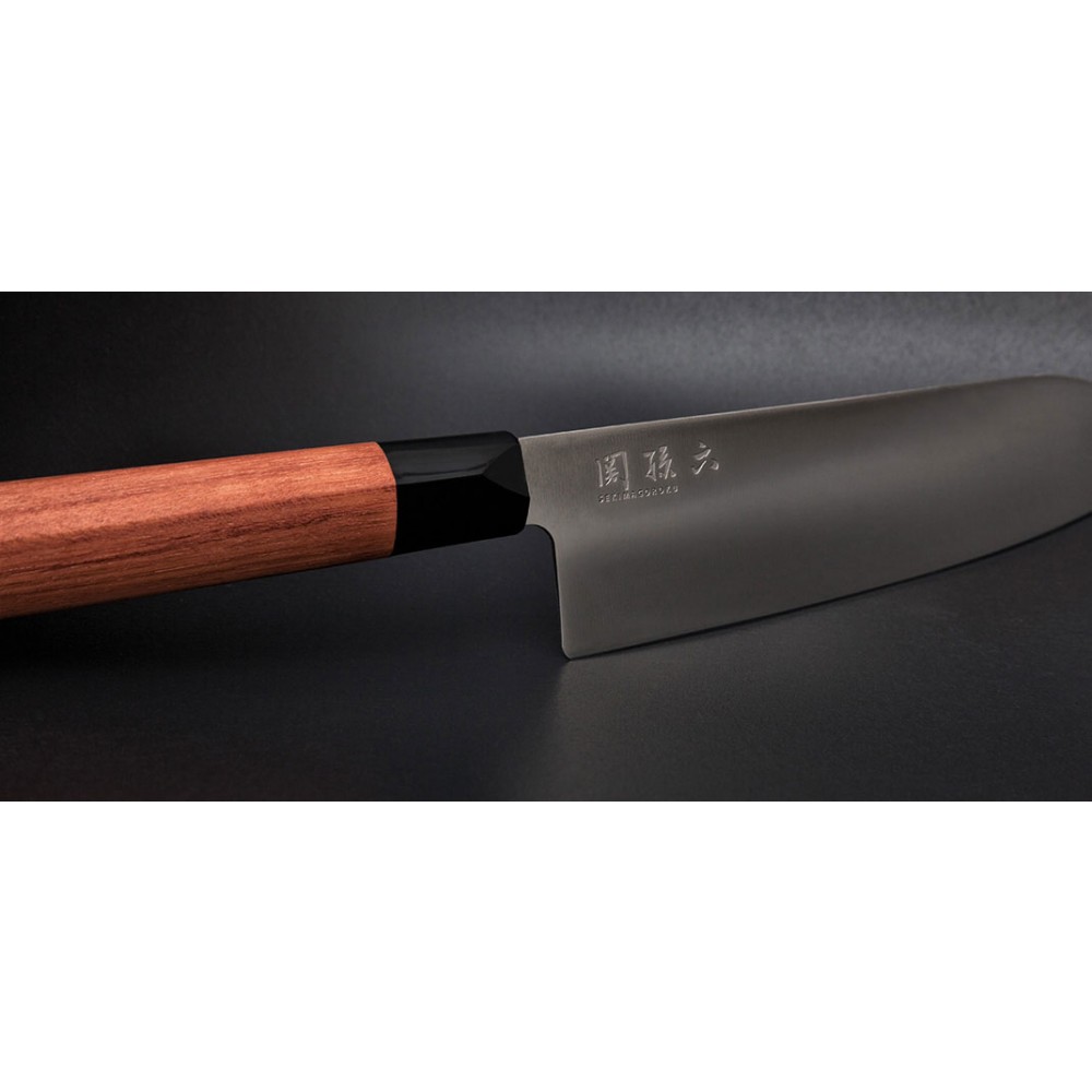 Seki Magoroku Red Wood (Sekoya) Serisi en yüksek kalitedeki 58±1 HRC sertlikte çelikten yapılmış, seriye yüksek kesme performansı sağlayan, ayna bitişli bıçağı ve zarifçe parlatılmış kenarıyla cezbeder. Geleneksel kestane şekline sahip sap Sekoya ağacından yapılmıştır. Bu sert ağacın yapısında doğal olarak yüksek oranda yağ bulunduğu için suya dayanıklıdır. Parlatılmış polipropilen halka ahşabın modern rengine ahenk katar.