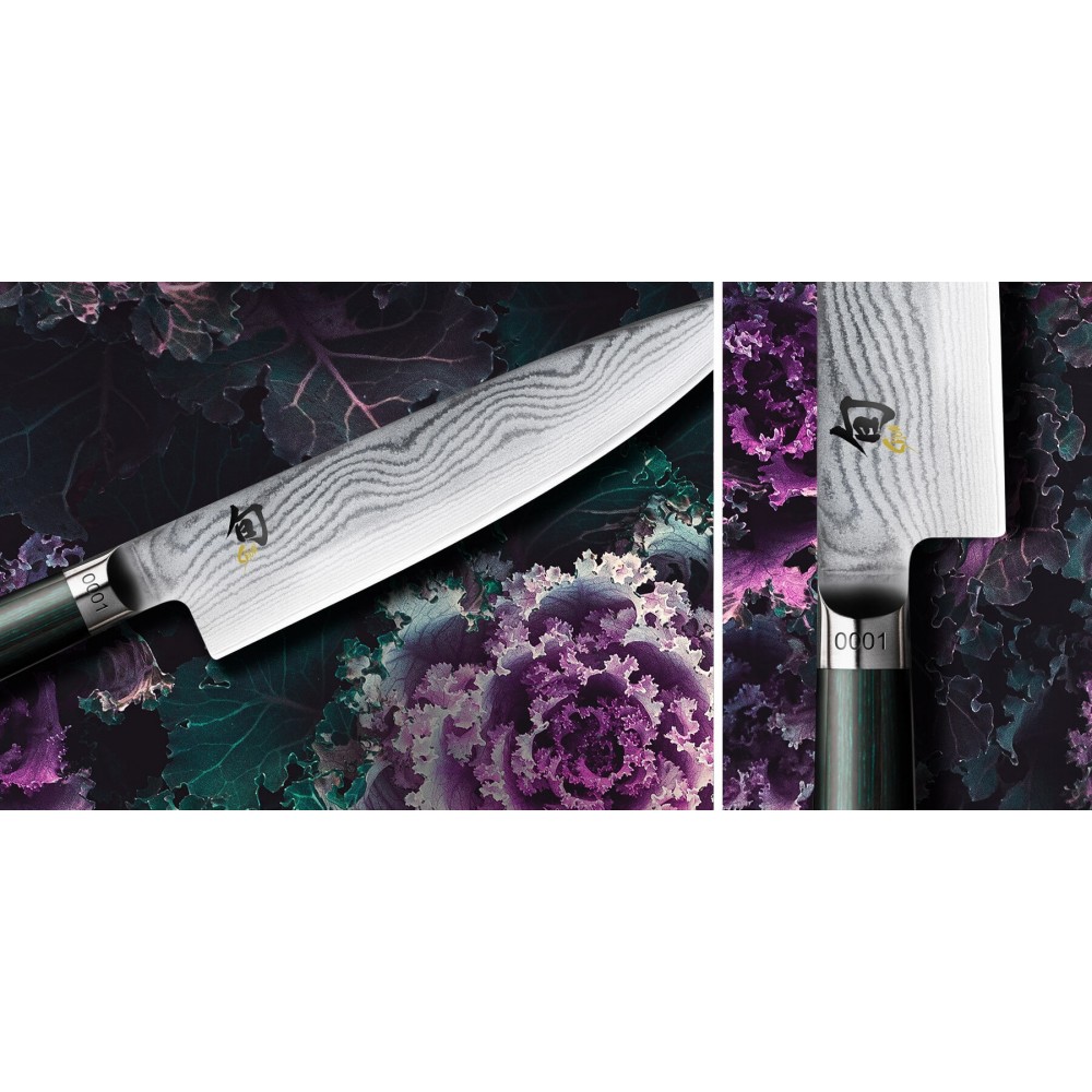 Her iki tarafı da bilenmiş olan bıçak esasen, 61 (± 1) HRC sertliğe sahip VG MAX çelikten oluşur ve 32 kat Şam çeliği ile kaplanmıştır. Bu kombinasyon, son derece yüksek kesme işlemi devamlılığı ve uzun süreli keskinlik sağlama özelliği taşır. Şam çeliği ayrıca her bir bıçağa özel bir görünüm kazandırır. SHUN Classic serisinin normal bıçakları gibi, kai özel üretiminin özel yeşim taşı yeşili ve siyah renk damar görünümlü sapı, özellikle esnek, dayanıklı, uzun ömürlü ve neme dayanıklı hale getirmek için seçilen reçinelerle işlenmiş pakka ağacından üretilmiştir. Komple dövülerek üretilmiş pırazvana bölümü, bıçak ile sap arasındaki dengeyi sağlar. Bıçak saplarının geleneksel Japon tarzı kestane şekli ele rahatça oturur ve kesme işlemi esnasında güvenli bir tutuş sağlar.