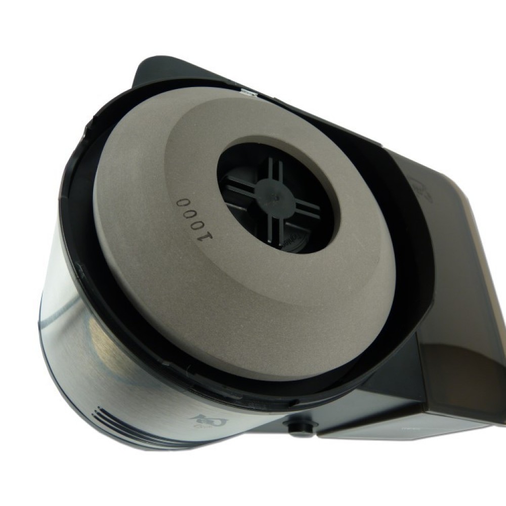 Makinenin konik pozisyonuna bağlı olarak, ince taneli bileme taşı bileme sırasında sürekli ıslanır. Bu nedenle, küçük metal tozları suyla gider, bıçak ve taşın ısınması önlenir. Çapaklar, keskin uçlar, yıpranmadan doğan kıymıklar, çapak fırçasıyla manuel olarak temizlenebilir. Her iki tarafından taşlanan Japon bıçakları, 16 derece açıyla bilenir. Avrupa üretimi bıçaklar, 22 derece açıyla bilenir. Makinenin ölçüleri 26,0x16,5x19,0 cm U/G/Y