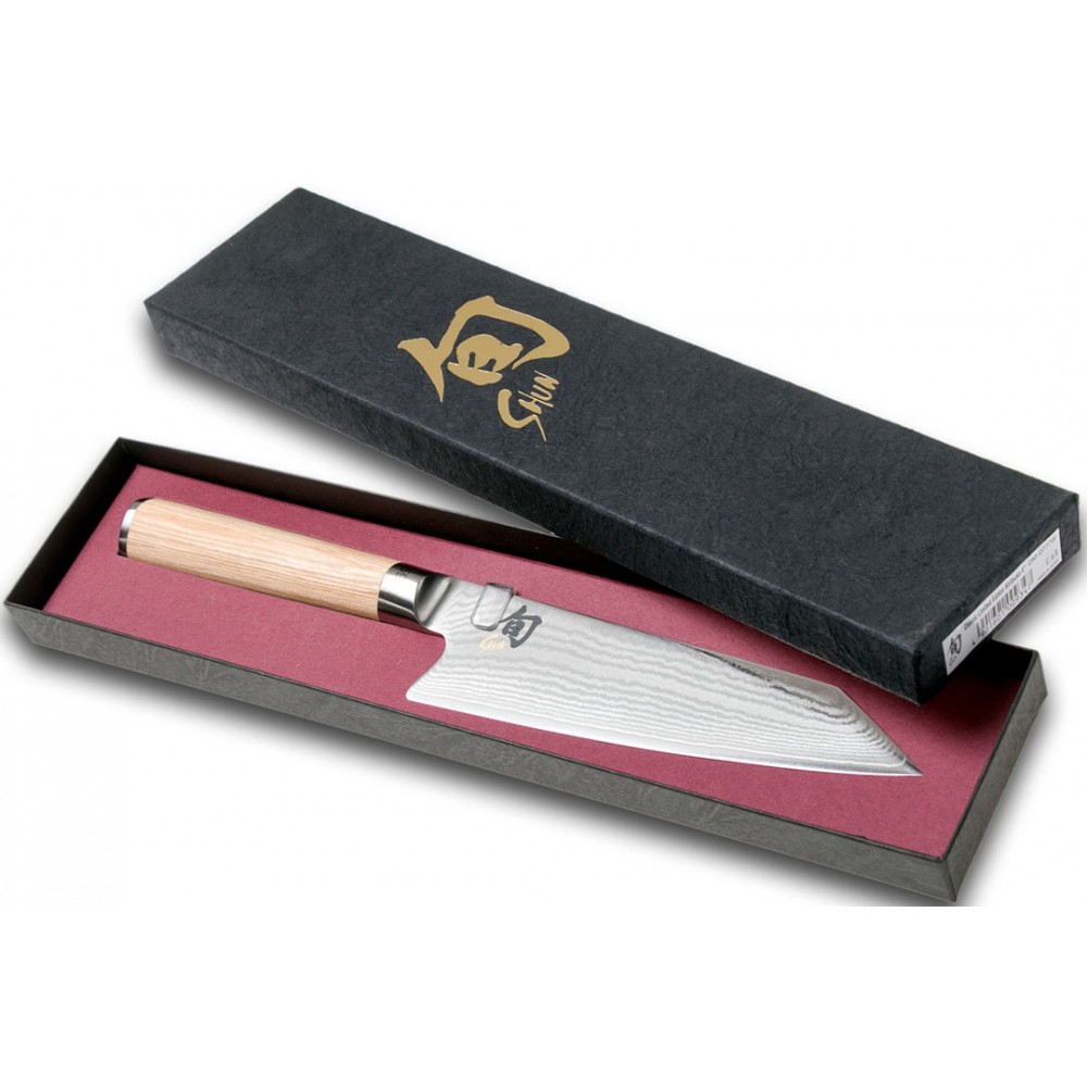 Kai Kiritsuke formundaki bıçaklarını avrupaya ik defa sunuyor! Bu geleneksel tasarımı, japon şefler sebze, balık ve et işlerinde kullanırlar. Konik yapısı sadece soyma, porsiyonlama ve kesme işleri için değil aynı zamanda dilimleme işleri içinde mükemmeldir. Bıçağın arka ucundaki çentik tutuş noktasını bıçağın içine doğru ilerletir. Bu yapı hızlı dilimleme işleri yaparken daha fazla kontrol sağlar. Kai Shun Kiritsuke sınırlı sayıda üretilmiştir. (5555 adet)