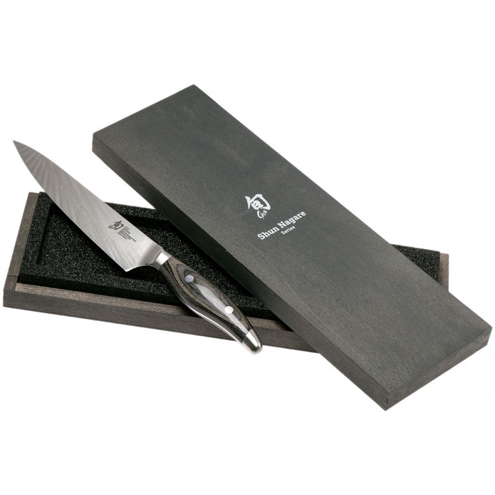Shun Nagare Serisi, KAI Japon demirciliğinin yenilikçi başyapıtı karşınızda. Sofistike tasarım, üretimde kullanılan özel malzemeler ve karmaşık üretim süreci, bu bıçakları mutfakta lüks sınıfın yeni lideri yapıyor. İyi parlatılmış bıçak yüzeyi, radyal çizgilere sahip damascus katmanlarını göz alıcı hale getiriyor. Bu efekt gri-siyah desenlere sahip sap ile birleştirilerek çarpıcı bir görüntü elde edilmiş. Serinin bıçakları iki farklı tip çelik kullanılarak elde edilen 72 katmanlı 61(±1)HRC damascus çeliğinden üretilmiştir. Karmaşık katmanlanan bu iki farklı çelikten elde edilen bıçağın kesme gücü ve dayanıklılığı inanılmaz!