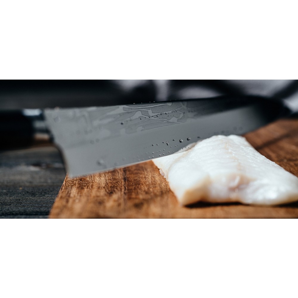 Kai tarafından hazırlanan yeni Shun Pro Sho bıçak serisi, klasik Japon tasarımını modern detaylar ve yüksek kaliteli malzemelerle ustaca bir araya getiriyor. Bu bıçak serisinin üstün kalitesi ve eşsiz görüntüsü Kai ürünlerinin uzun süren geleneğinin özelliklerini taşır ve bu, her bir bıçağı özel bir parça yapar. Yapısı sayesinde, Shun Pro Sho serisinde kullanılan koyu Pakka ağaç saplar son derece hoş dokunuşa sahiptir. VG10 çeliğin keskin kısmı, yenilikçi bir oyma tekniğiyle hazırlanmıştır ve göze hoş gelen bir yapıdadır. Bir tarafından taşlanmış olan son derece keskin bu bıçaklar çok düzgün, rahat kesim sunar ve profesyonellerin beklentilerini karşılar.