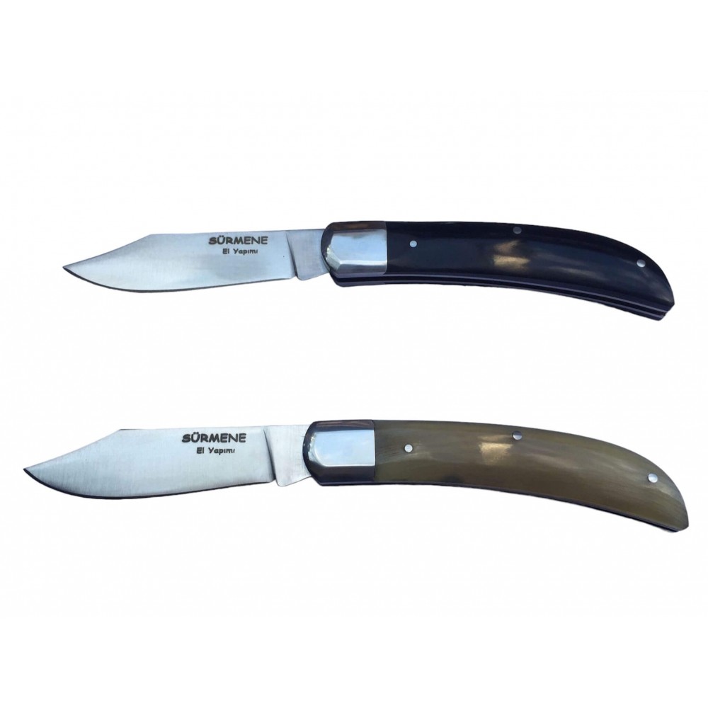 Sürmene 'nin meşhur boynuz saplı elmalı çakıları sadece Bıçakçım.com 'da! Parlak paslanmaz bıçağı ve mükemmel işçiliğe sahip boynuz sapı ile çok şık ve kullanışlı bir çakı.