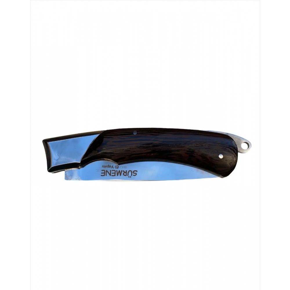 DetaylarSürmene Çakı Elmalı Wenge Ağacı Saplı Sürmene 'nin bilezik ve kabzaya işlenmiş wenge saplı çakıları sadece Bıçakçım.com 'da! Parlak paslanmaz bıçağı ve mükemmel işçiliğe sahip ahşap sapı ile çok şık ve kullanışlı bir çakı. Çakının Özellikleri; - Bıçağın Boyu: 9cm